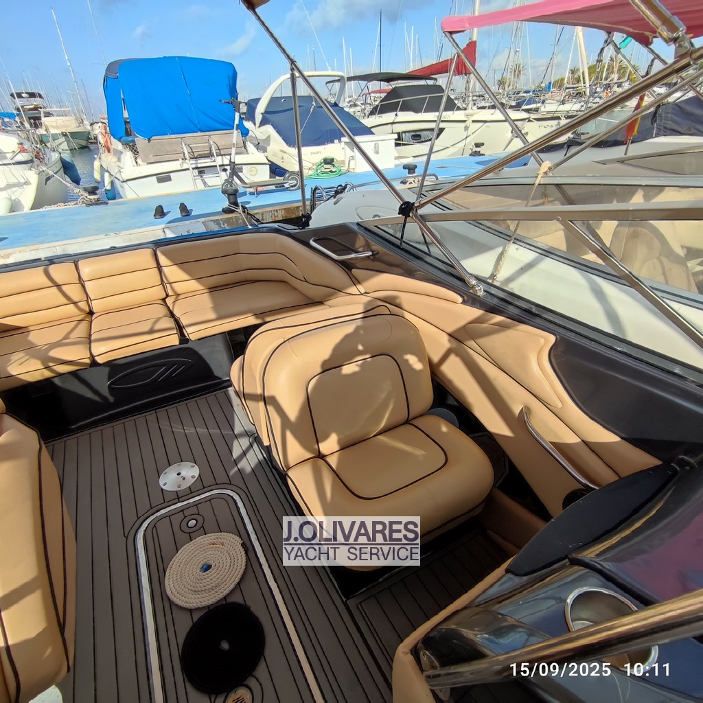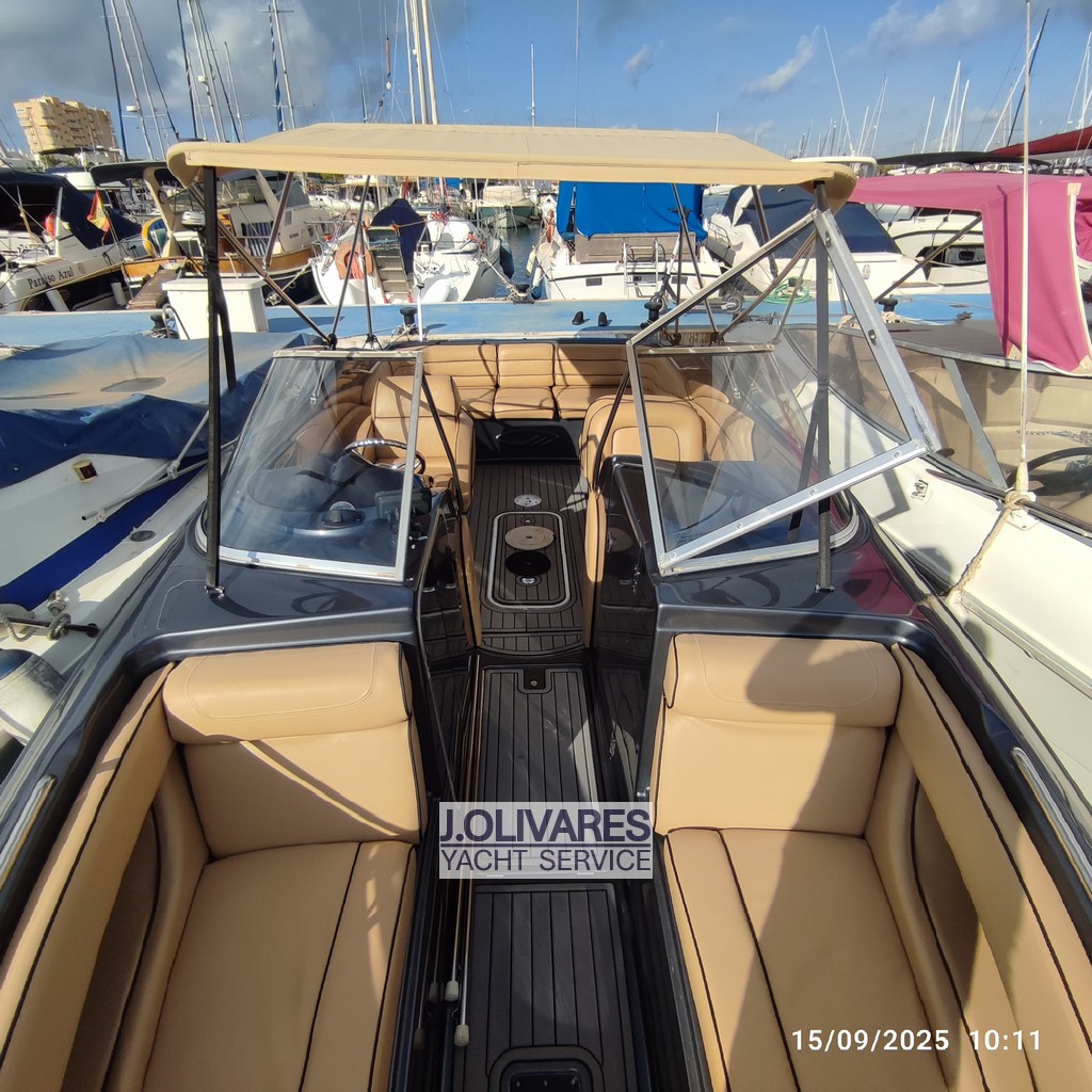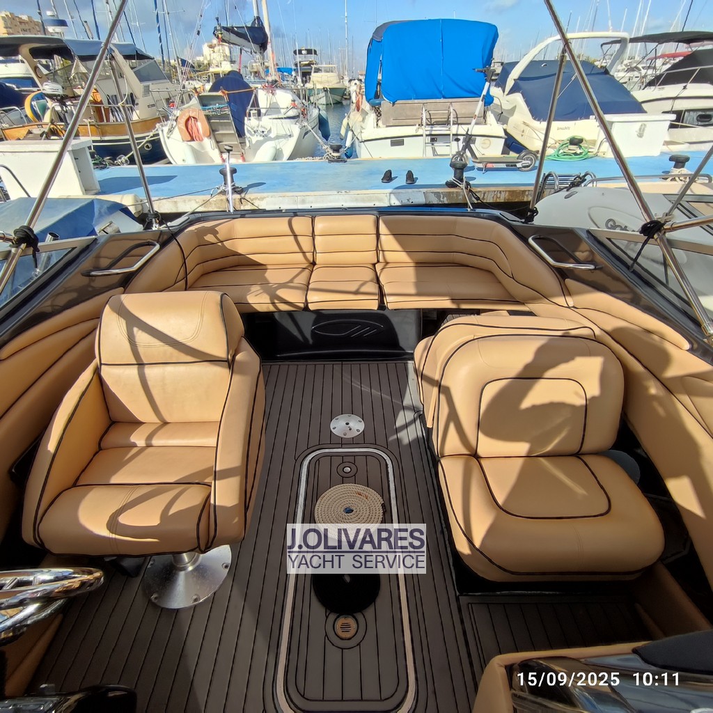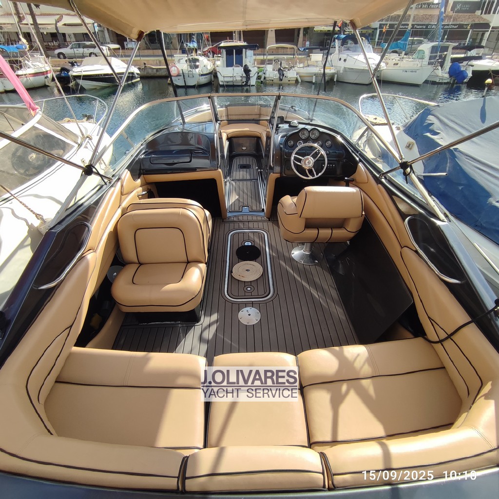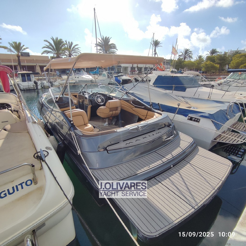 Maxum 2300 SR en venta en La Manga del Mar Menor, embarcación deportiva de 7,20 metros con motor MerCruiser V8 de 260 CV, ideal para disfrutar del día en familia o con amigos. Destaca por su amplia bañera con solárium, suelo tipo teca sintética y excelente estado de tapicería, ofreciendo confort y estilo en navegación. Perfecta opción como lancha deportiva en Murcia, lista para navegar y disfrutar desde el primer día.
